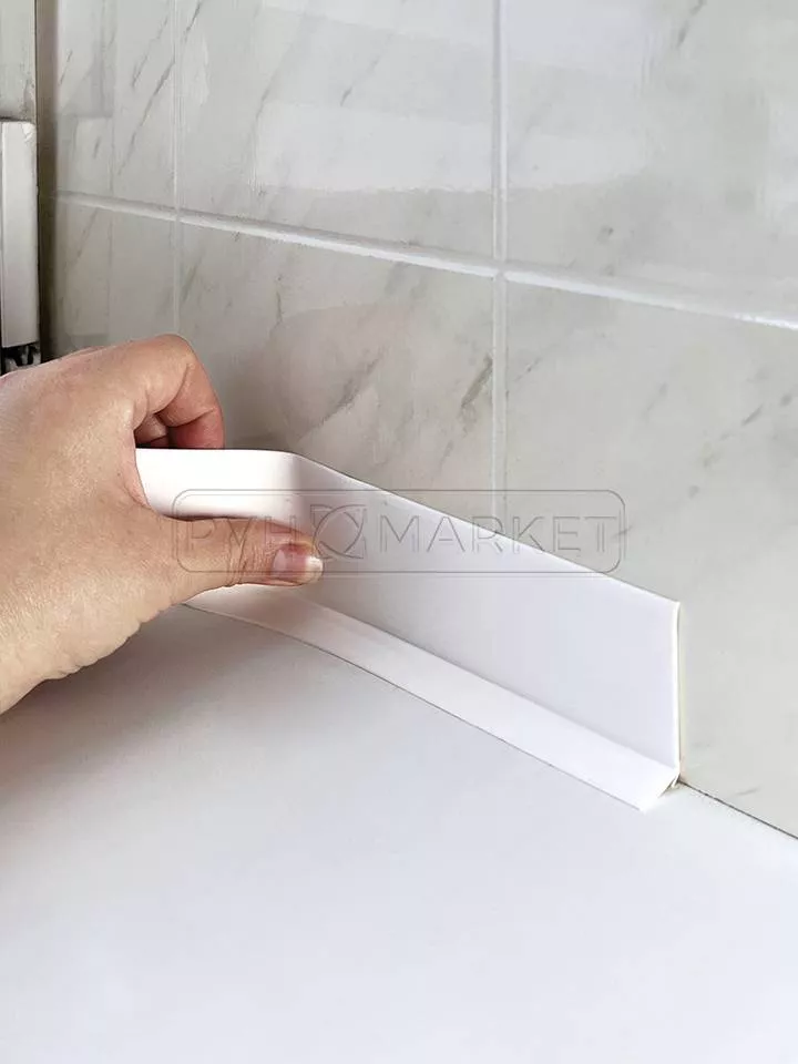 Гибкий плинтус можно использовать не только в комнатах, но и в ванной, ведь он обладает влагостойкостью. Плинтус из мягкого ПВХ идеально прилегает к стене и прост в уходе - его достаточно протереть тряпкой для очистки.