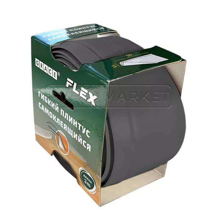 Самоклеящийся гибкий плинтус FLEX графит 3000х50х2 мм