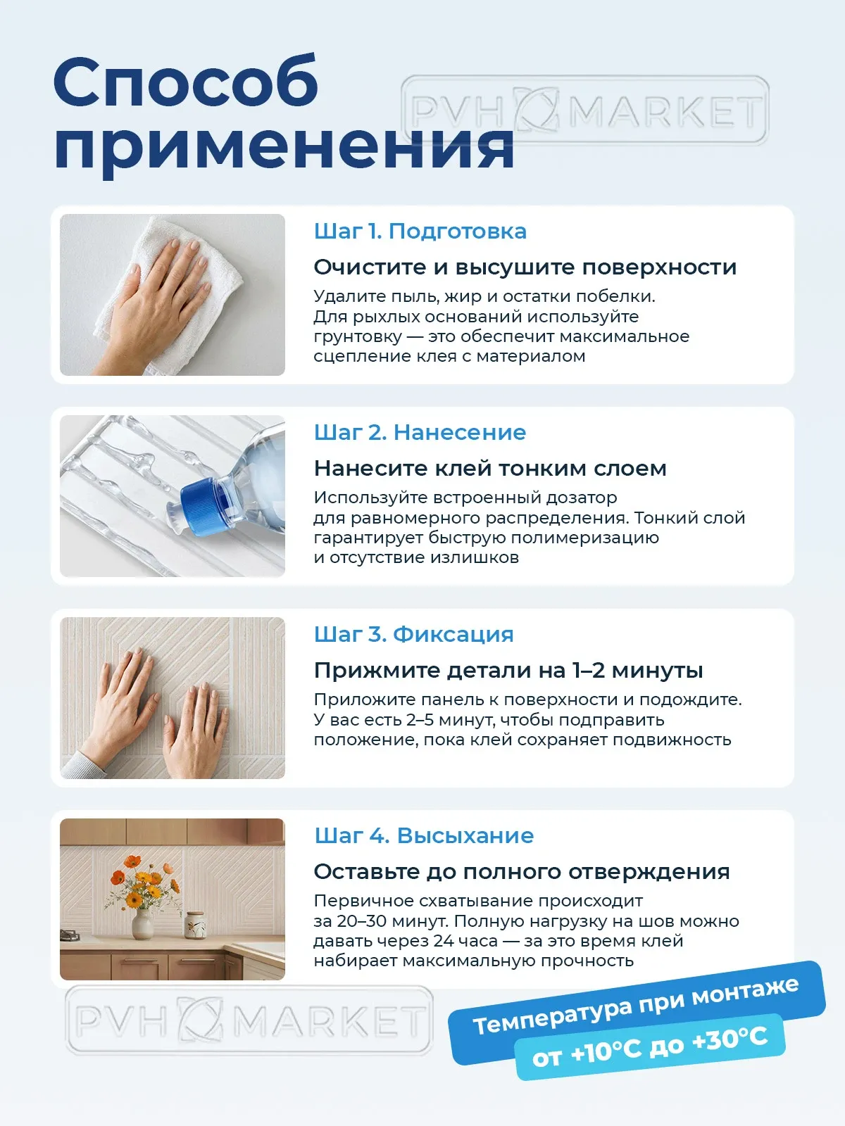 Клей универсальный для ПВХ панелей позволяет значительно сократить время монтажа и добиться аккуратного результата без лишних усилий. Он отлично подходит как для профессионального ремонта, так и для самостоятельной отделки стен.