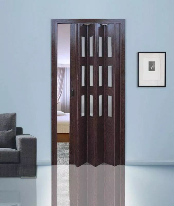 Дверь гармошка Венге 690-840х2020 мм коллекция Фаворит с расстекловкой