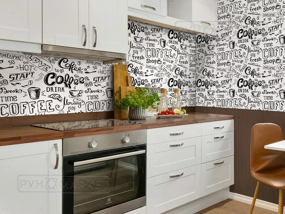 Фартук для кухни из пластика "Кофе белый" 0,6 м (длина 3 м)
