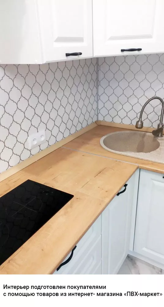 Фартук влагостойкий, герметик рекомендуем использовать для заделки щелей, чтобы защитить мебель и стены от попадания воды и грязи.