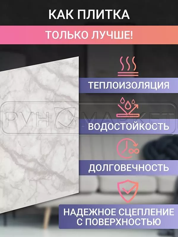 - Клеевой слой будет держаться практически на любой поверхности: Дерево, стекло, бетон, пластик, гладкие металл или штукатурка - всё это подойдёт для панелей ПВХ. НО! Не стоит клеить их на виниловые обои, грязные или жирные стены, осыпающуюся побелку.