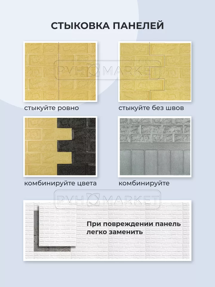 При использовании в ванной или на кухне рекомендуем дополнительно обработать стыки герметиком. Место стыка с ванной или со столешницей рекомендуем предварительно закрыть бордюрной лентой соответствующего размера и цвета, а сверху на бордюрную ленту закрепить 3Д панель.Декларация соответствия на панели