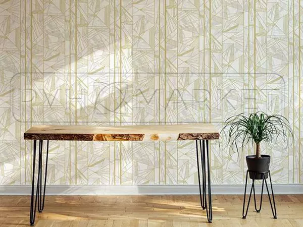 "Золотые Бермуды" - роскошные влагостойкие панели для ванной комнаты и кухни. На молочно-белом фоне расположены разнорамзерные золотые треугольники, которые создают причудливое переплетение. Такой дизайн придает комнате более светлый и просторный вид, а также скрывает небольшие дефекты стен.
