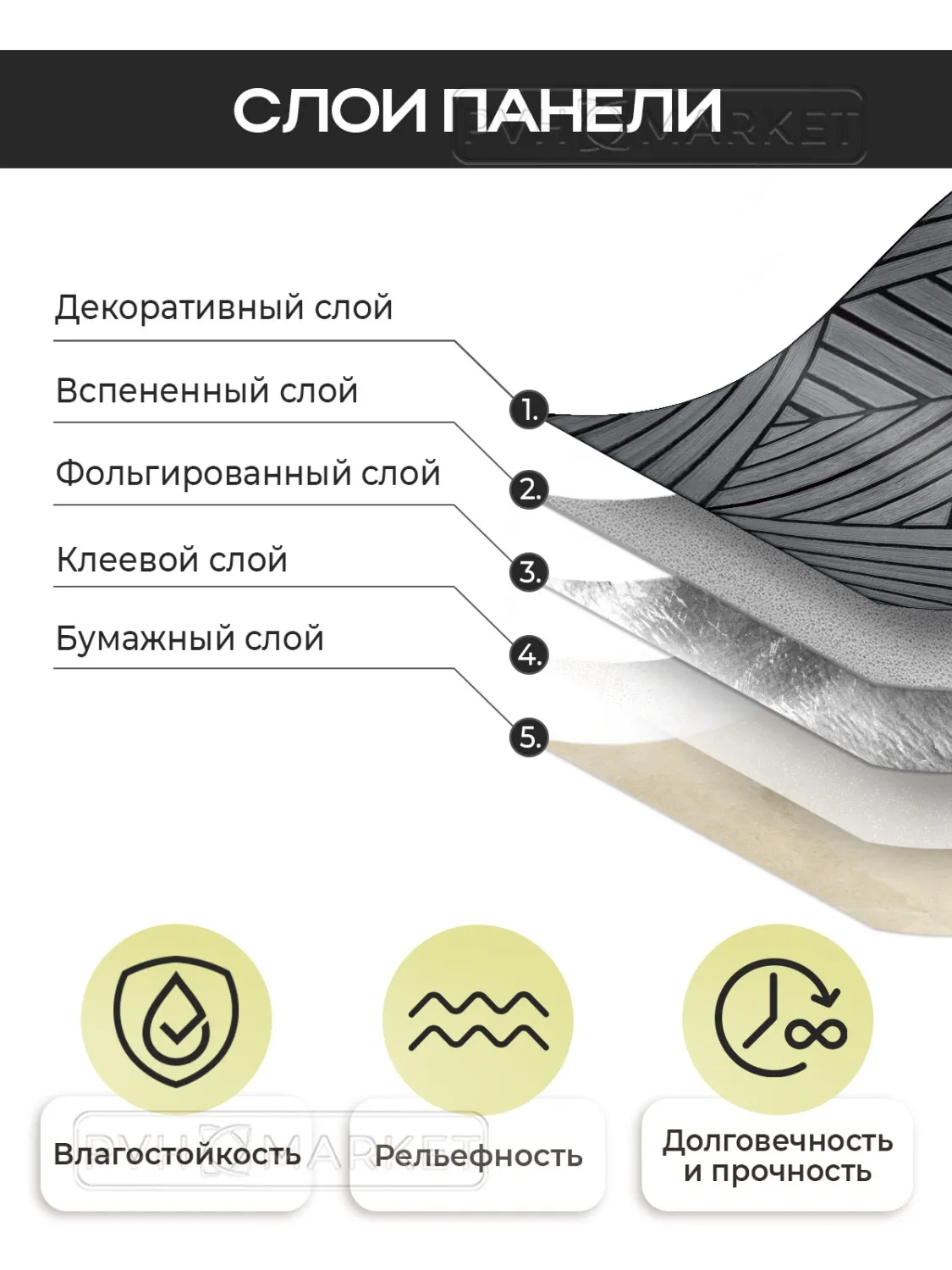 Cовременное решение для быстрого и стильного обновления интерьера без сложного ремонта. Панель легко крепится на любую ровную поверхность: стены кухни, ванной, прихожей или балкона. Благодаря прочной основе и качественному клеевому слою она надежно фиксируется и устойчива к влаге, перепадам температур и загрязнениям.
