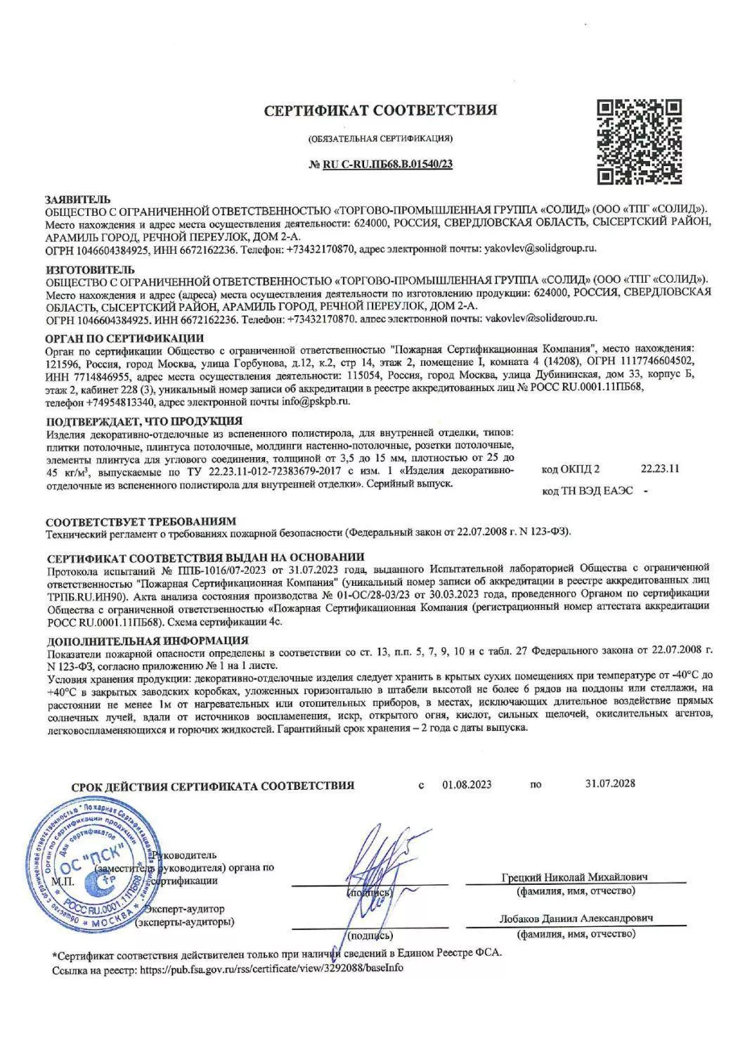 Сертификат соответствия Солид ПВХ Маркет СПб и ЛО ☎ 8-800-775-29-97.